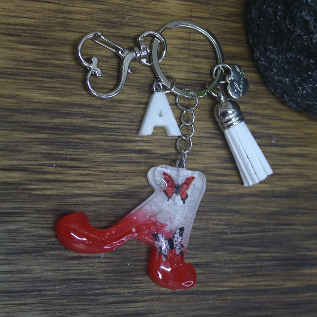 Elevate your everyday style with this exquisite handmade resin “A” keychain — a statement piece designed for those who appreciate luxury in the smallest details. Crafted with precision, each keychain combines a rich red-and-white resin base with delicate butterfly accents, creating a captivating blend of color, artistry, and shine. This is not just an accessory; it is one of those unique handmade pieces that turns personalizing your keys into a refined experience.