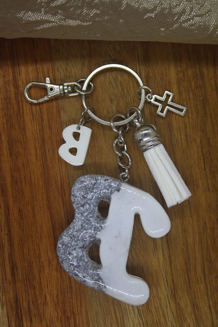 Letter B Resin Keyholder – White & Silver Elegance