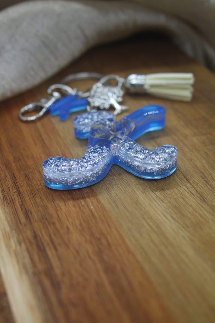 Thoughtfully handmade, this deep blue resin keyholder blends tranquility and meaning into a design that feels both elegant and personal. The rich, calming deep blue base evokes the serenity of twilight skies, while shimmering silver leaf accents catch the light with a subtle glow.