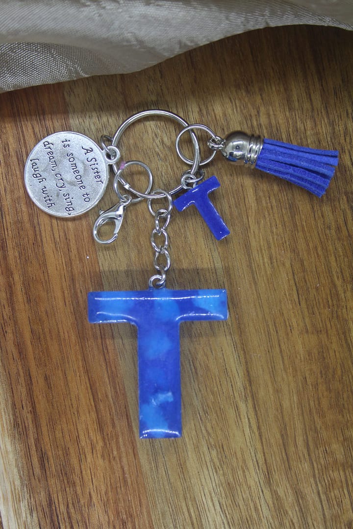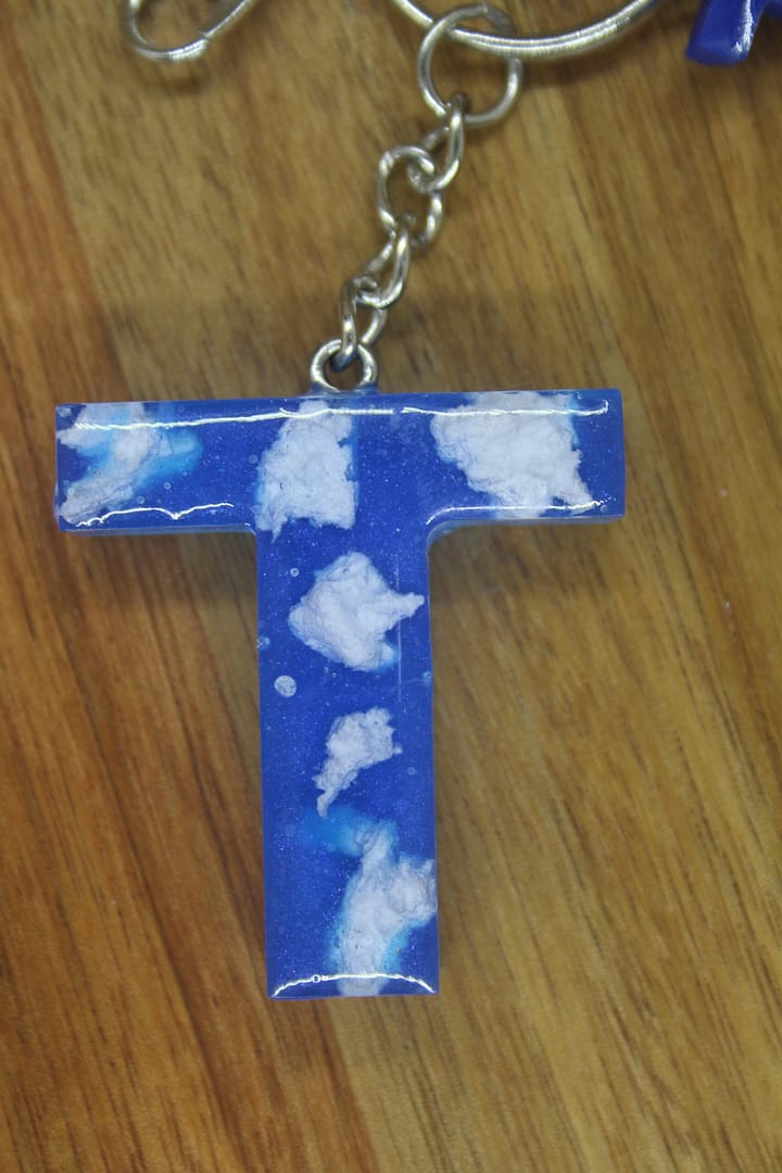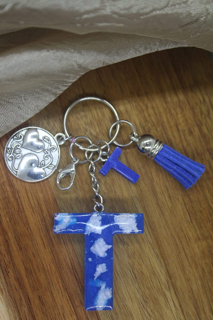 The Letter T Resin Keyholder is a handcrafted celebration of inner peace and quiet power. Its deep blue base evokes the stillness of the sky at twilight — rich, calm, and full of possibility. Soft white clouds drift across the surface, representing clarity and lightness of being. A small blue ‘t’ makes the piece personally meaningful, while a polished silver pendant adds a subtle touch of elegance. Finished with a blue leather tassel, this keyholder is both grounding and inspiring — a reminder that presence and peace can travel with you, every day.