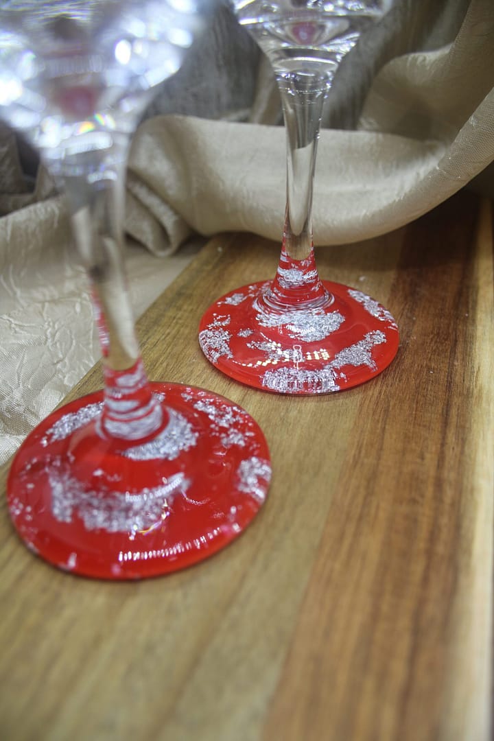 Elevate every sip with this handcrafted luxury wine glass, featuring a stunning resin base infused with rich red tones and shimmering silver accents. Each glass is meticulously crafted to bring beauty, sophistication, and personality into your moments of relaxation and celebration.